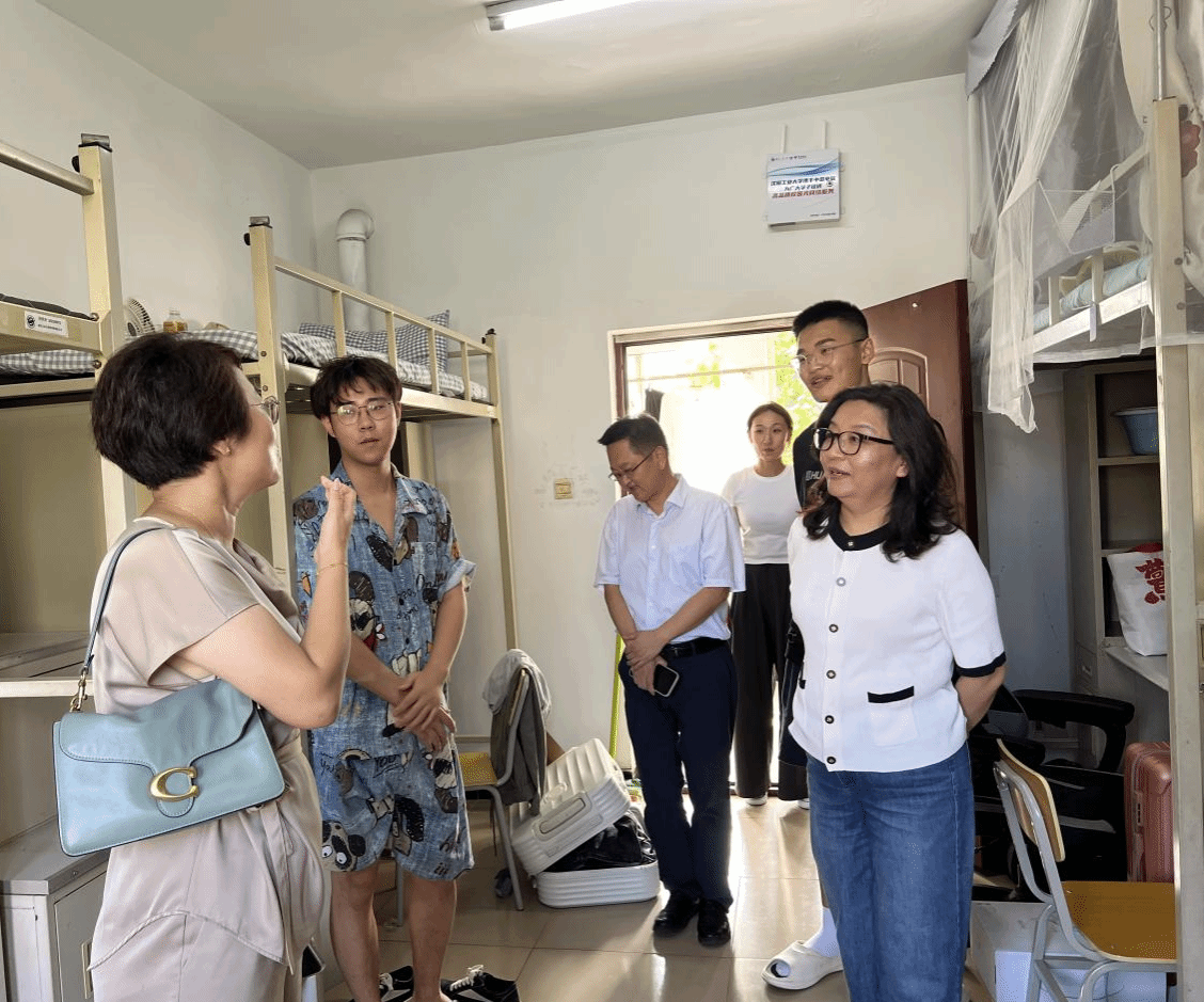 为第一时间掌握新生入学适应情况,将关怀精准送达,学院领导与辅导员老师专程走进新生宿舍,开启了一场暖心 “家访”。每到一间寝室,老师们都与新生们密切交流,亲切询问大家的住宿感受、生活需求,细致叮嘱里满是牵挂;同时也反复提醒同学们,要时刻绷紧 “安全弦”, 既要注意用电、消防等宿舍安全细节,也要提高防诈骗、防侵权的意识。